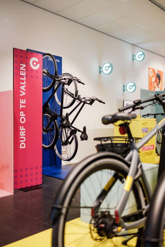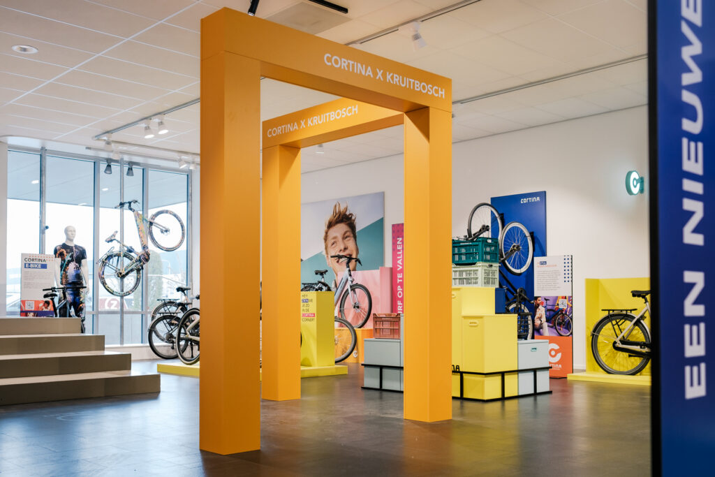 For this project Studio Veldsla has designed an immersive and vibrant customer journey for the retail design of Cortina Bikes and accessories. The concept aims to capture the attention of customers and create a holistic experience that reflects Cortina’s brand values.